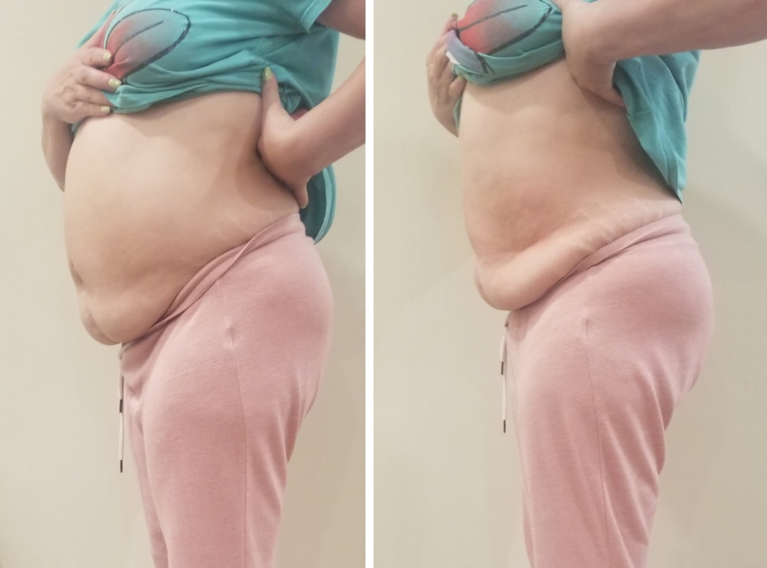 Ultimate Contour targets and shrinks fat cells with ultrasound technology, while RF Tightening stimulates collagen to firm the skin. The combo helps reduce volume and improve skin texture in a single session.